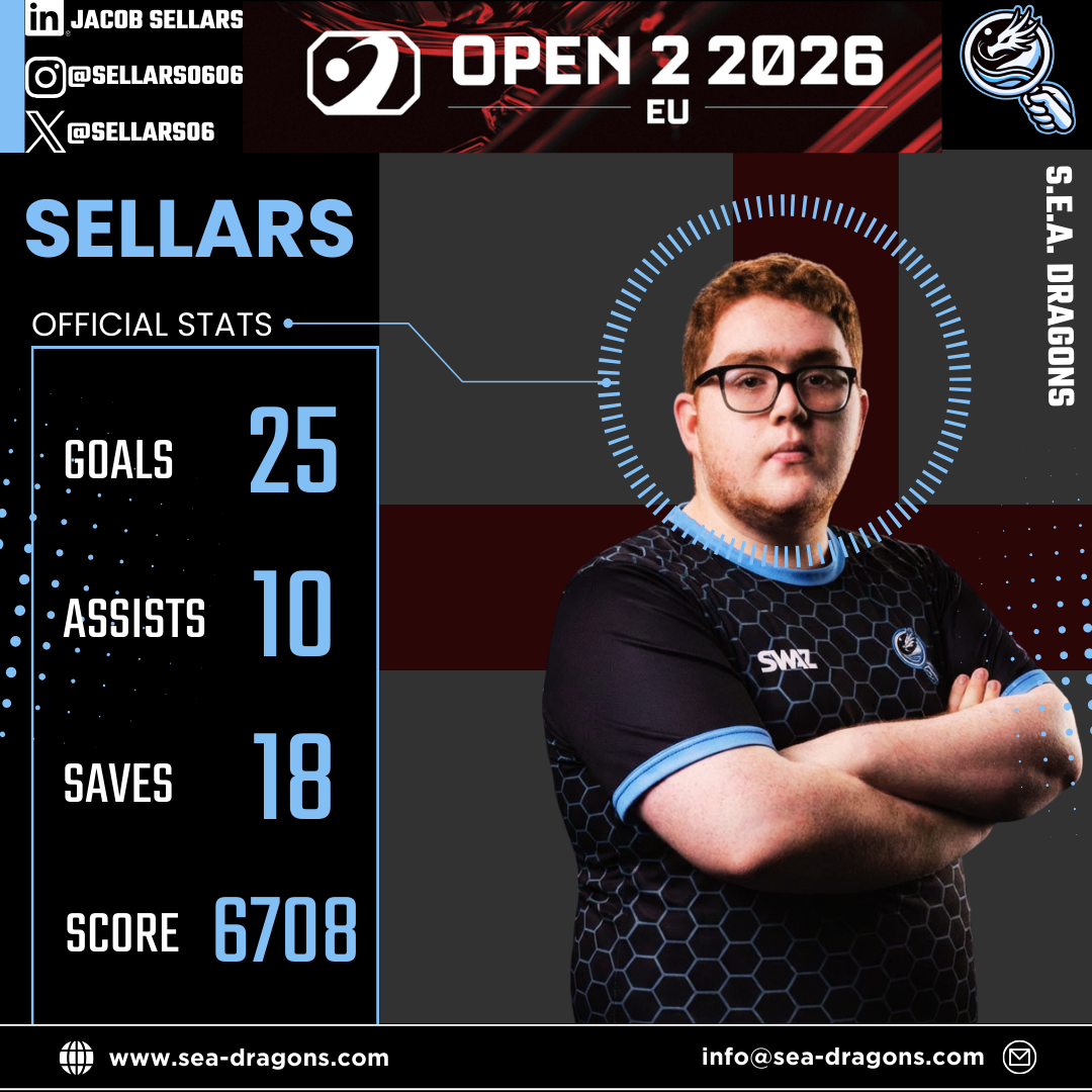 The best mechanical player on the pitch in every game during our RLCS Day 1 run, taking 56 shots by himself, accounting for 48.7% shots taken by the full team during day 1, converting 25 of those 56 shots into goals, a staggering 55.6% of all S.E.A. Dragons' goals came from Sellars, where he individually scored 44.6% of the shots that he took throughout the day. Also having the highest-combined score within the team.