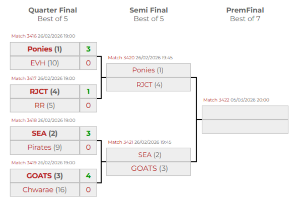 Fixture 8: - S.E.A. Dragons vs GOATS (Semi-Finals, best of 5, first to 3 games victories) - Seed 3